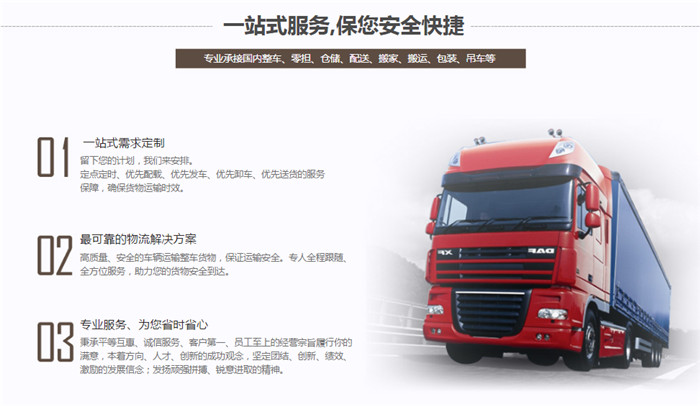 公司诞生以来,江西安泰物流有限公司在中国的“天涯、海角”,以自己***的运输服务为区域经济交流、为人类的和平进步作出了不可磨灭的贡献。我们的服务网络已遍布每一个角落,正象和煦的阳光爱抚着世界上每一个欣欣向荣的生命,无论是热带雨林中的大树,还是极地的苔藓,安泰物流的***服务致力于支持***的每一个爱好和平的企业、社团及个人,无论他***还是平凡...... 江西安泰物流有限公司是运输家族在中国的一颗耀眼明珠,几经风雨,它已在天津的运输行业中脱颖而出,拥有庞大的运输车队、宽阔的仓库、完善的管理机制、安泰货运有限公司是***从事国内公路快运、货物仓储、物流配送、货物分检及物流加工的服务公司拥有6——18不等型车辆。公司经过多年的发展,运输网络已覆盖到华东、华南、华北及***主要城市。各大区域基本上形成和完善了以大区为中心的局域网络班车运行路线,使公司的运输综合竞争实力得到了极大的加强。可为客户提供全封闭车、半封闭车、平板车等各种车型,以满足不同客户的需求。公司以陆运及长途公路运输“门到门”服务为主,***受理无锡至***各地的整车、零担货物运输,以合理的运价及***化、个性化、效率化的***服务赢得客户,得以长足发展。 安泰物流公司是一家集公路,长途搬家,仓储为一体的第三方物流服务性企业。承接天津到***各地整车零担货物运输等货运服务。提供门到门点到点服务。一票到底,凭着快捷,信誉,的服务宗旨,赢了广大客户的信赖。并相续在江西、浙江、上海、广东、福建、河南、北京等***各大城市设有办事处。希望我们的合作能给您带来服务的享受。本公司为您提供24小时货物查询,业务咨询,信息反馈等物流服务。